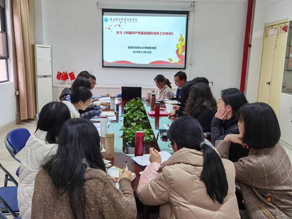 為了規(guī)范基層黨組織選舉工作,12月24日上午,直屬馬克思主義學(xué)院黨支部組織支部全體黨員在行政樓107會議室認(rèn)真學(xué)習(xí)《中國共產(chǎn)黨基層組織選舉工作條例》(后簡稱《條例》)。本次會議由支部書記熊美蘭同志主持。