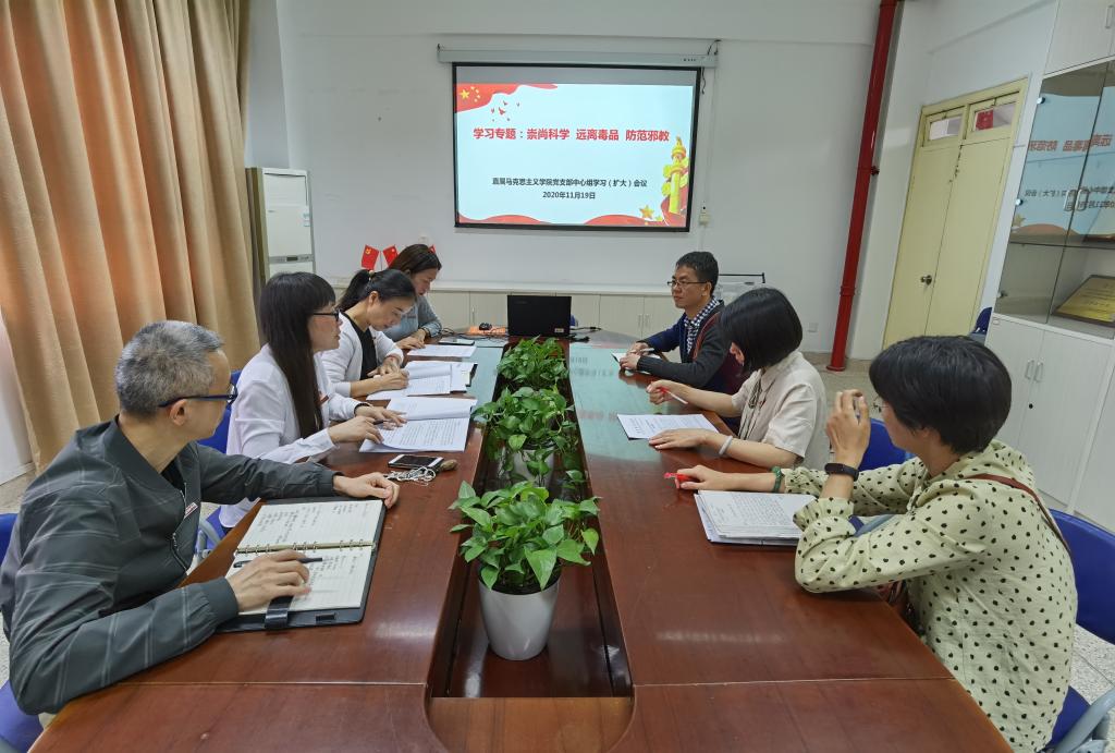 11月19日下午,直屬馬克思主義學(xué)院黨支部在行政樓107會(huì)議室召開中心組學(xué)習(xí)(擴(kuò)大)會(huì)議,開展“崇尚科學(xué) 遠(yuǎn)離病毒 防范邪教”專題學(xué)習(xí)。本次會(huì)議由直屬馬克思主義學(xué)院黨支部書記熊美蘭主持,支部全體委員及各教研室主任參加了會(huì)議。