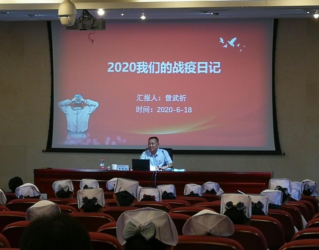 2020年6月18日下午,直屬馬克思主義學(xué)院全體教師黨員在實訓(xùn)樓4樓報告廳參加校黨委書記曾武祈黨課——“2020我們的戰(zhàn)疫日記”。