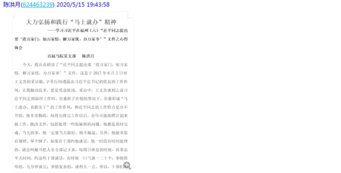 首先,全體黨員通過(guò)線下自學(xué)和線上集中學(xué)習(xí)相結(jié)合的方式學(xué)習(xí)了《4月30日孫堯部長(zhǎng)在2020年全國(guó)職業(yè)教育教師企業(yè)實(shí)踐基地工作推進(jìn)會(huì)上的講話錄音整理》《習(xí)近平在福州(五)“習(xí)書記為福州人民留下了寶貴的財(cái)富”》《習(xí)近平在福州(六)“近平同志提出要‘進(jìn)萬(wàn)家門,知萬(wàn)家情,解萬(wàn)家憂,辦萬(wàn)家事’”》 《習(xí)近平總書記在黨外人士座談會(huì)上的講話金句》《在國(guó)際護(hù)士節(jié)到來(lái)之際 習(xí)近平向全國(guó)廣大護(hù)士致以節(jié)日的祝賀和誠(chéng)摯的慰問(wèn)》《教育部等八部門發(fā)文,加快構(gòu)建高校思想政治工作體系》等6份材料。形勢(shì)與政策教研室主任丁愛芝和基礎(chǔ)教研室主任陳洪月依次作了學(xué)習(xí)心得交流。