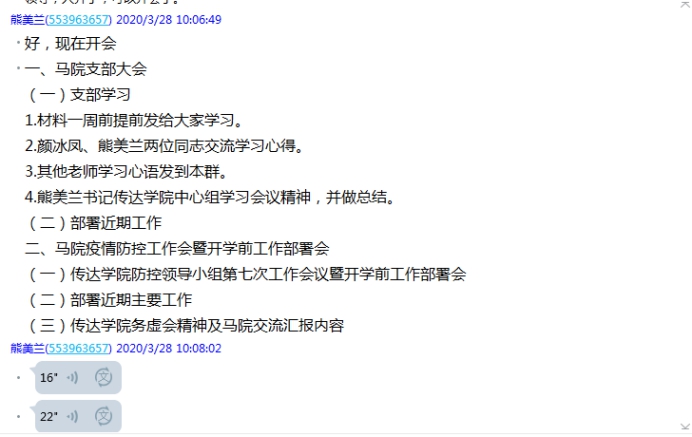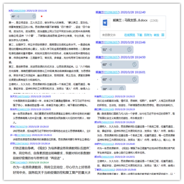 2020年3月28日上午,直屬馬克思主義學(xué)院黨支部召開(kāi)線上黨員大會(huì),集中學(xué)習(xí)《新時(shí)代高等學(xué)校思想政治理論課教師隊(duì)伍建設(shè)規(guī)定》《教育部有關(guān)部門負(fù)責(zé)人就<新時(shí)代高等學(xué)校思想政治理論課教師隊(duì)伍建設(shè)規(guī)定>答問(wèn)》等6份文件。會(huì)議由黨支部書(shū)記熊美蘭主持,全體教師黨員參加了會(huì)議。教師們?cè)跁?huì)議上暢談心得和感想,掀起學(xué)習(xí)討論熱潮。