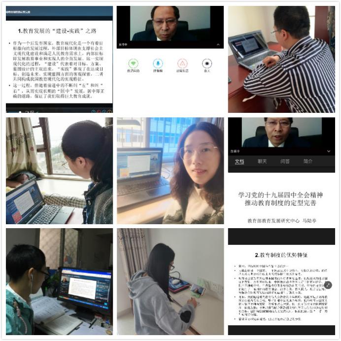 為深入學(xué)習(xí)貫徹黨的十九屆四中全會(huì)精神,切實(shí)把制度優(yōu)勢(shì)轉(zhuǎn)化為治理效能,堅(jiān)決打贏高校疫情防控阻擊戰(zhàn),2020年3月3日上午10點(diǎn),直屬馬克思主義學(xué)院黨支部開展支部主題黨日活動(dòng),組織全體教師黨員在線參加教育部教育發(fā)展研究中心副主任馬陸亭研究員的網(wǎng)絡(luò)直播課。馬克思主義學(xué)院全體教師黨員參加了此次學(xué)習(xí)。
