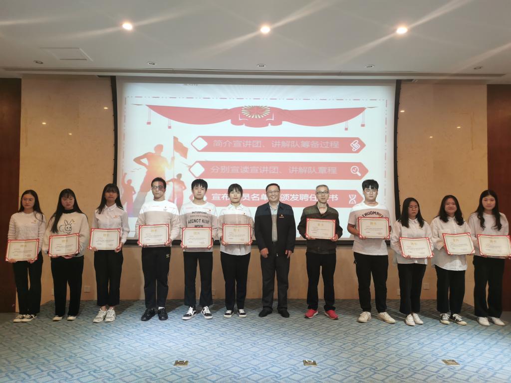 最后校黨委書記曾武祈分別為宣講團成員頒發(fā)聘書,他強調(diào)宣講團的成立將進一步推動我校習(xí)近平新時代中國特色社會主義思想的學(xué)習(xí)與宣傳,意義重大,希望同學(xué)們能夠更進一步深入基層了解我們的黨情、國情、社情,堅定信仰、錘煉意志、增長見識、學(xué)好本領(lǐng),做好宣傳工作,更好地奉獻才干、服務(wù)社會。