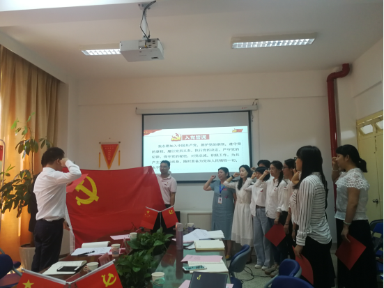 2019年10月17日上午,繼“不忘初心、牢記使命”主題教育黨課之后,直屬馬克思主義學院黨支部在行政樓107會議室開展全體黨員、全體思想政治理論課教師入黨及思想政治理論課教師宣誓儀式。儀式由直屬馬克思主義學院黨支部書記熊美蘭同志主持,黨工部部長、學院主題教育巡回指導小組成員吳華同志出席,馬克思主義學院院長、直屬馬克思主義學院黨支部書記熊美蘭同志主持,直屬馬克思主義學院黨支部全體教師黨員參加了本次活動。院直機關黨總支第一黨支部書記黃曦同志,院直機關黨總支第二黨支部書記魏鶯同志,院直機關黨總支第三黨支部書記葉文偉同志,院直機關黨總支第四黨支部書記宋維同志,臨床醫(yī)學系第二黨支部高長花同志前來觀摩學習。