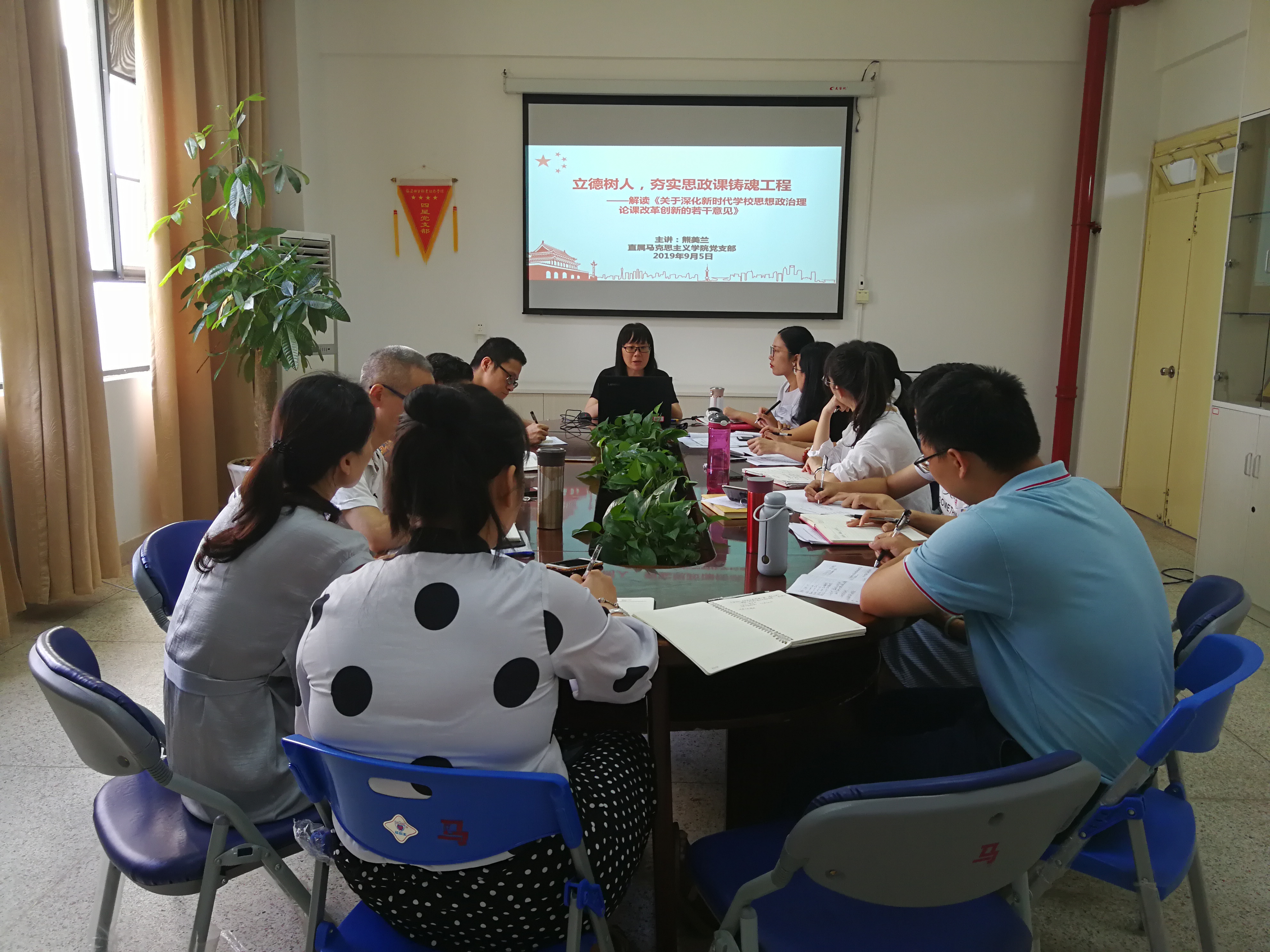 會上,熊美蘭書記首先對《意見》進行了學習,分別從《意見》提出的思政課重要意義、建設(shè)原則、總體要求和完善思政課課程教材體系、加強思政課教師隊伍建設(shè)、提升思政課水平、加強黨對思政課建設(shè)的領(lǐng)導六大方面內(nèi)容進行了深入的分析解讀。