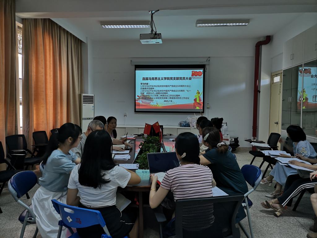 2021年7月8日上午,直屬馬克思主義學院黨支部在行政樓107會議室召開黨員大會暨第二季度意識形態(tài)專題工作會。會議由黨支部書記熊美蘭同志主持,黨支部全體黨員同志參加了會議。