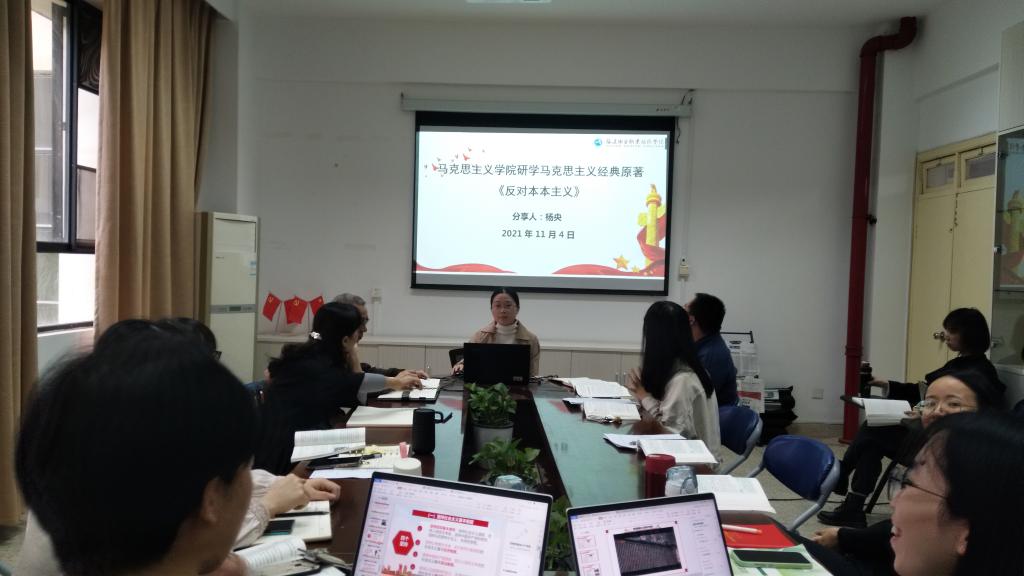 2021年11月4日上午,直屬馬克思主義學(xué)院黨支部第二黨小組在會(huì)議室107開展經(jīng)典研學(xué)分享活動(dòng)。此次活動(dòng)由黨支部委員羅蕓主持,楊央老師主講,研學(xué)內(nèi)容為毛澤東的《反對(duì)本本主義》。