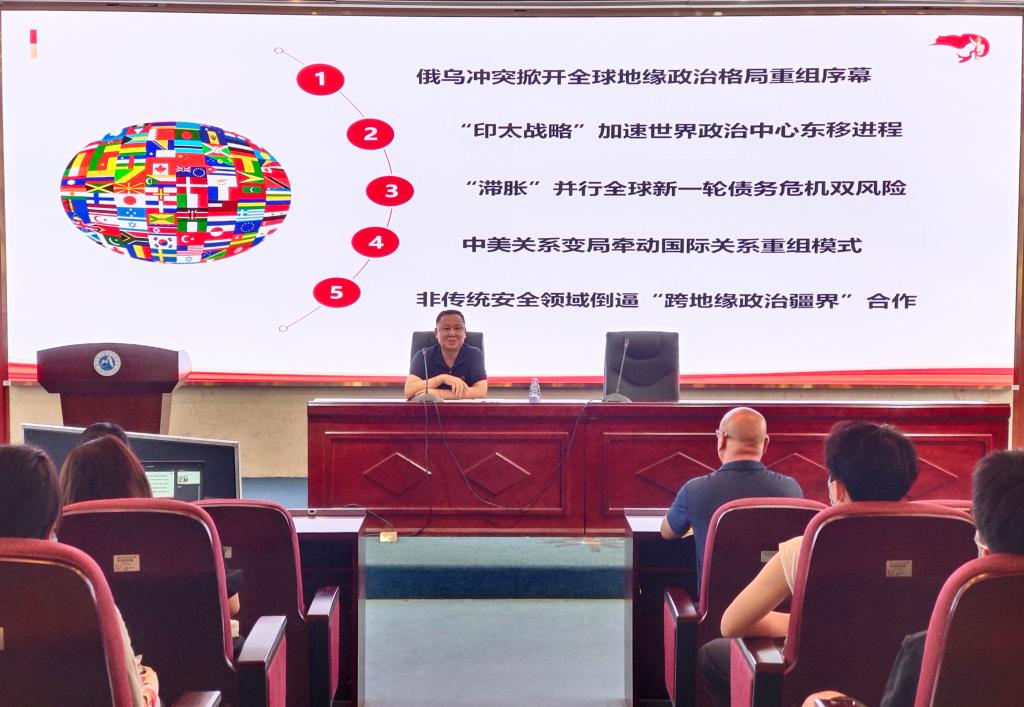 曾武祈著重梳理了當(dāng)前復(fù)雜多變的國際局勢、黨和國家面臨的安全挑戰(zhàn)及其背后動因,為黨員們帶來了一堂理論深刻、視野開闊、內(nèi)容豐富,極具吸引力和感染力的黨課。在他的講述中,全體黨員充分感受到了中國在全球變局中化危為機(jī)、勇毅前行的卓越能力。曾武祈指出,黨的二十大必將擘畫發(fā)展新藍(lán)圖,贏得更加偉大的勝利和榮光。廣大黨員教師應(yīng)比以往更加堅定地迎接世界的變革與挑戰(zhàn),以實際行動詮釋自己對國家和民族的責(zé)任和擔(dān)當(dāng)。