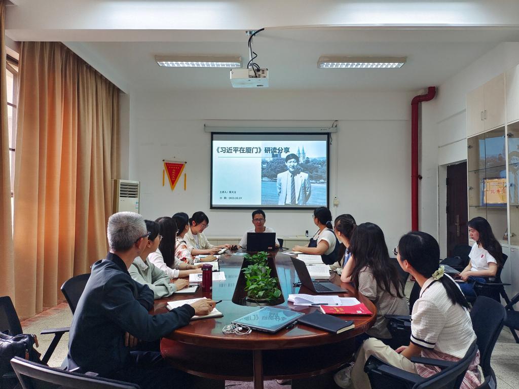 隨后,張?zhí)煳耐窘Y(jié)合教學(xué)科研和自身工作實(shí)際,精讀了《習(xí)近平在廈門》一書并進(jìn)行研學(xué)分享。該書通過13篇采訪實(shí)錄,真實(shí)還原和再現(xiàn)習(xí)近平在廈門的從政軌跡和領(lǐng)導(dǎo)風(fēng)范。從習(xí)近平同志當(dāng)年這些施政作為中,可以深切領(lǐng)悟到:立志是一切工作的前提,并且要立志做大事。即便我們暫時(shí)處于平凡崗位,或許還不曾遇到急難險(xiǎn)重,但仍然要始終懷著一份“士不可不弘毅”的擔(dān)當(dāng)精神,立足本職,埋頭苦干,胸懷長(zhǎng)遠(yuǎn)抱負(fù),從點(diǎn)滴做起,把小事當(dāng)大事干,把小事干成大事,用一流業(yè)績(jī)成就精彩人生。