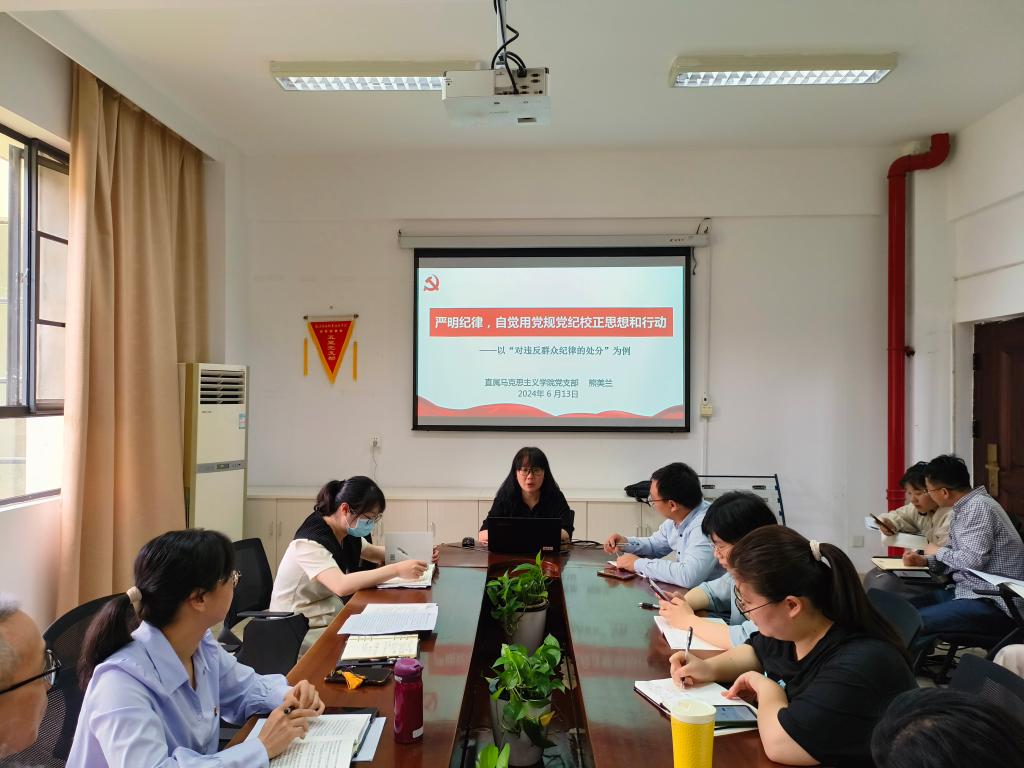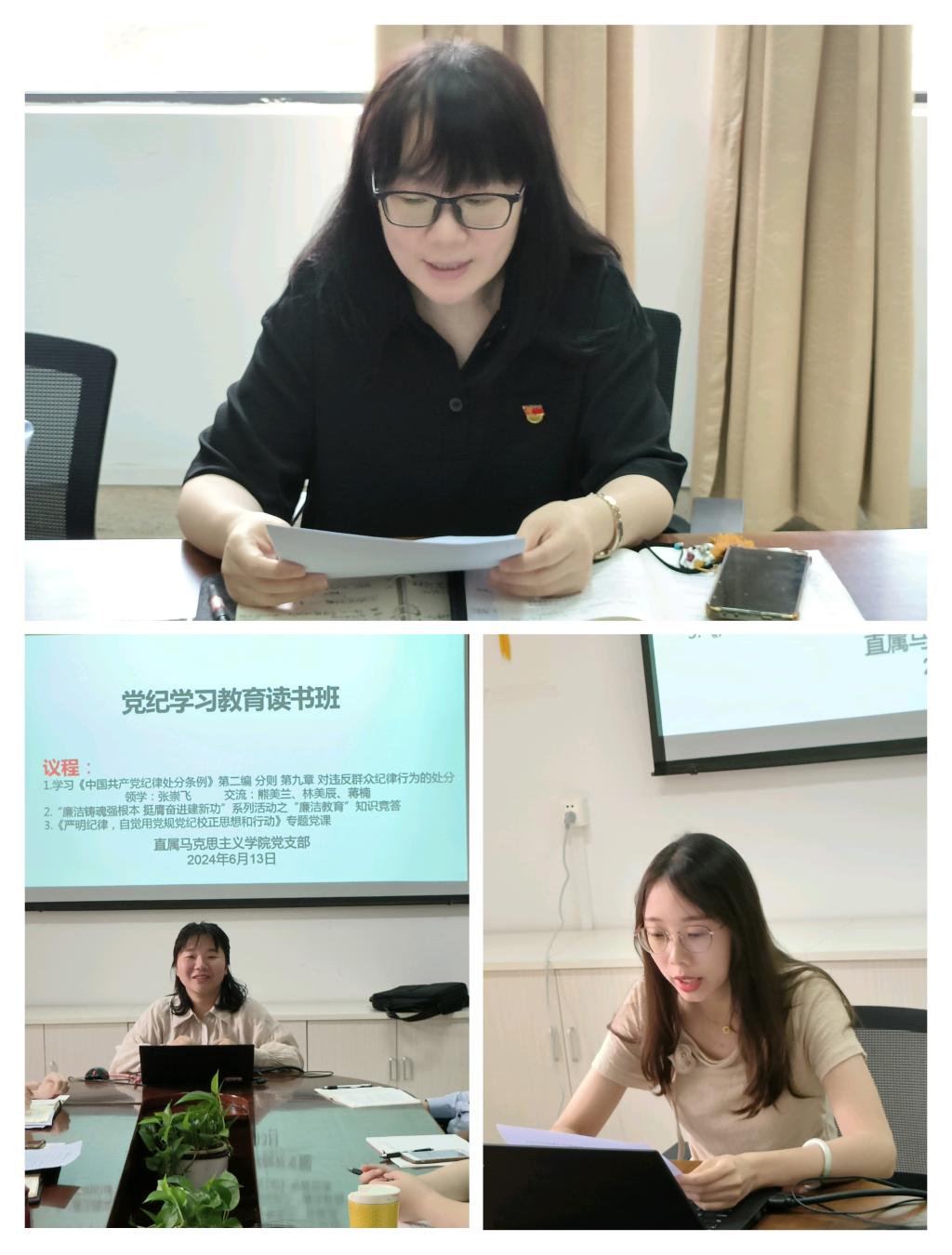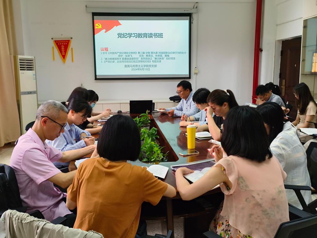 為嚴(yán)明黨的群眾紀(jì)律,進(jìn)一步走好群眾路線,2024年6月13日,直屬馬克思主義學(xué)院黨支部黨紀(jì)學(xué)習(xí)教育讀書班在厚德樓107會(huì)議室圍繞《中國(guó)共產(chǎn)黨紀(jì)律處分條例》開(kāi)展第五次集體學(xué)習(xí)活動(dòng)。