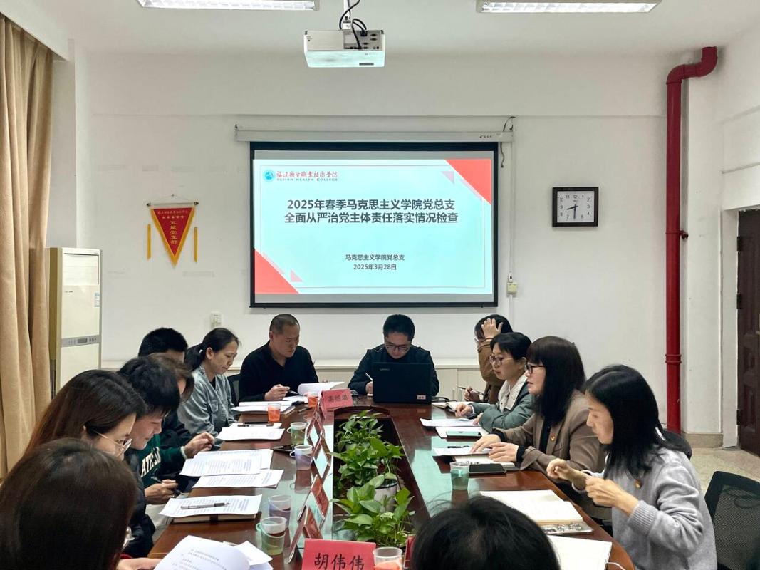 為進(jìn)一步落深落細(xì)落實黨組織全面從嚴(yán)治黨主體責(zé)任,不斷健全全面從嚴(yán)治黨體系,一體推進(jìn)黨風(fēng)政風(fēng)、師德師風(fēng)、校風(fēng)學(xué)風(fēng)建設(shè),3月28日,校黨委委員、副校長朱扶蓉率第六檢查組蒞臨馬院開展2025年春季全面從嚴(yán)治黨主體責(zé)任檢查。馬克思主義學(xué)院黨政領(lǐng)導(dǎo)班子成員、黨支部書記參加會議,會議由馬院黨總支書記熊美蘭主持。