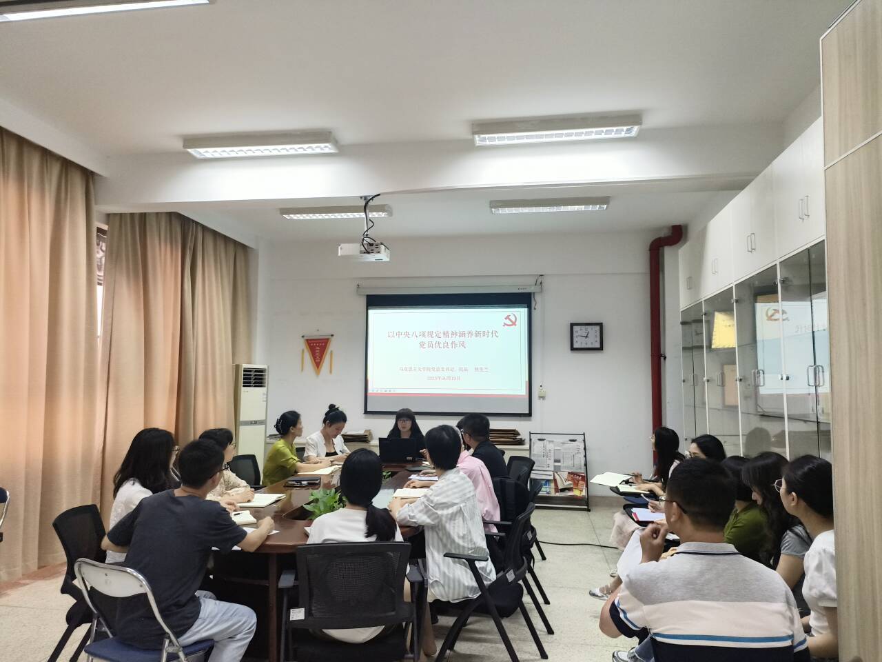 為深入貫徹中央八項(xiàng)規(guī)定精神學(xué)習(xí)教育,推進(jìn)作風(fēng)建設(shè)常態(tài)化長(zhǎng)效化,6月19日,馬克思主義學(xué)院黨總支書記、院長(zhǎng)熊美蘭作題為《以中央八項(xiàng)規(guī)定精神涵養(yǎng)新時(shí)代黨員優(yōu)良作風(fēng)》的專題黨課,馬院全體黨員教師參加。