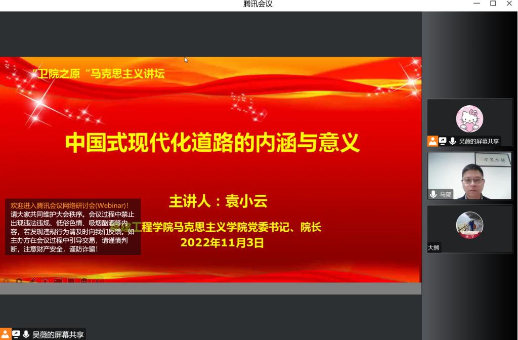 為引導我校師生堅持以中國式現(xiàn)代化全面推進中華民族偉大復興,不懈奮斗,勇毅前行,向著第二個百年奮斗目標邁進,2022年11月3日,我校馬克思主義學院邀請福建工程學院袁小云教授作《中國式現(xiàn)代化道路的內(nèi)涵與意義》專題講座。講座由馬克思主義學院院長熊美蘭主持,馬克思主義學院全體教師及部分學生代表參加。