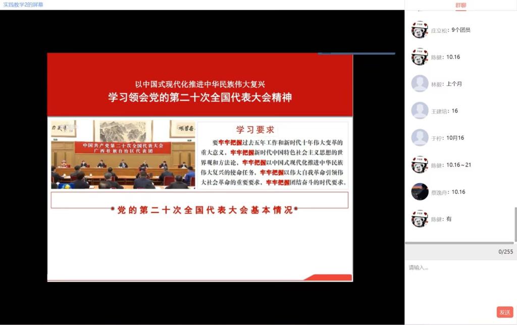 習(xí)近平總書記在黨的二十大報(bào)告中指出,在中華人民共和國成立特別是改革開放以來長期探索和實(shí)踐基礎(chǔ)上,經(jīng)過黨的十八大以來在理論和實(shí)踐上的創(chuàng)新突破,我們黨成功推進(jìn)和拓展了中國式現(xiàn)代化。為幫助社團(tuán)成員學(xué)習(xí)領(lǐng)會黨的二十大精神,2022年11月16日,集雅軒書畫協(xié)會成員齊聚云端,馬克思主義學(xué)院教師張茵珠開展了以“以中國式現(xiàn)代化全面推進(jìn)中華民族偉大復(fù)興——學(xué)習(xí)領(lǐng)會黨的第二十次全國代表大會精神”為主題的宣講。此次活動是馬克思主義學(xué)院學(xué)習(xí)貫徹黨的二十大精神系列宣講活動之一。