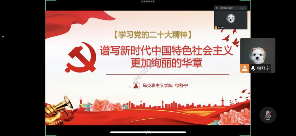 2022年11月14日,馬克思主義學(xué)院徐舒寧老師為22康復(fù)301-302班學(xué)生和演講與辯論社社團(tuán)成員開展了以“譜寫新時(shí)代中國特色社會主義更加絢麗的華章——學(xué)習(xí)黨的二十大精神”為主題的宣講。此次活動(dòng)是馬克思主義學(xué)院學(xué)習(xí)貫徹黨的二十大精神系列宣講活動(dòng)之一。