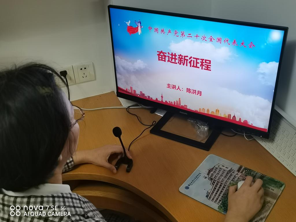 習(xí)近平總書記在黨的二十大報告中強調(diào)必須堅持守正創(chuàng)新,號召我們“堅定信心、守正創(chuàng)新,奮力譜寫全面建設(shè)社會主義現(xiàn)代化國家新篇章”。習(xí)近平總書記科學(xué)判斷中國發(fā)展方位,深刻洞察新的時代特征。為認(rèn)真學(xué)習(xí)宣傳貫徹黨的二十大精神,2022年11月23日晚,馬克思主義學(xué)院教師陳洪月在學(xué)習(xí)通直播間通過云端為時代先鋒協(xié)會社團(tuán)成員開展了以“奮進(jìn)新征程——學(xué)習(xí)領(lǐng)會黨的第二十次全國代表大會精神”為主題的宣講。此次活動是馬克思主義學(xué)院學(xué)習(xí)貫徹黨的二十大精神系列宣講活動之一。