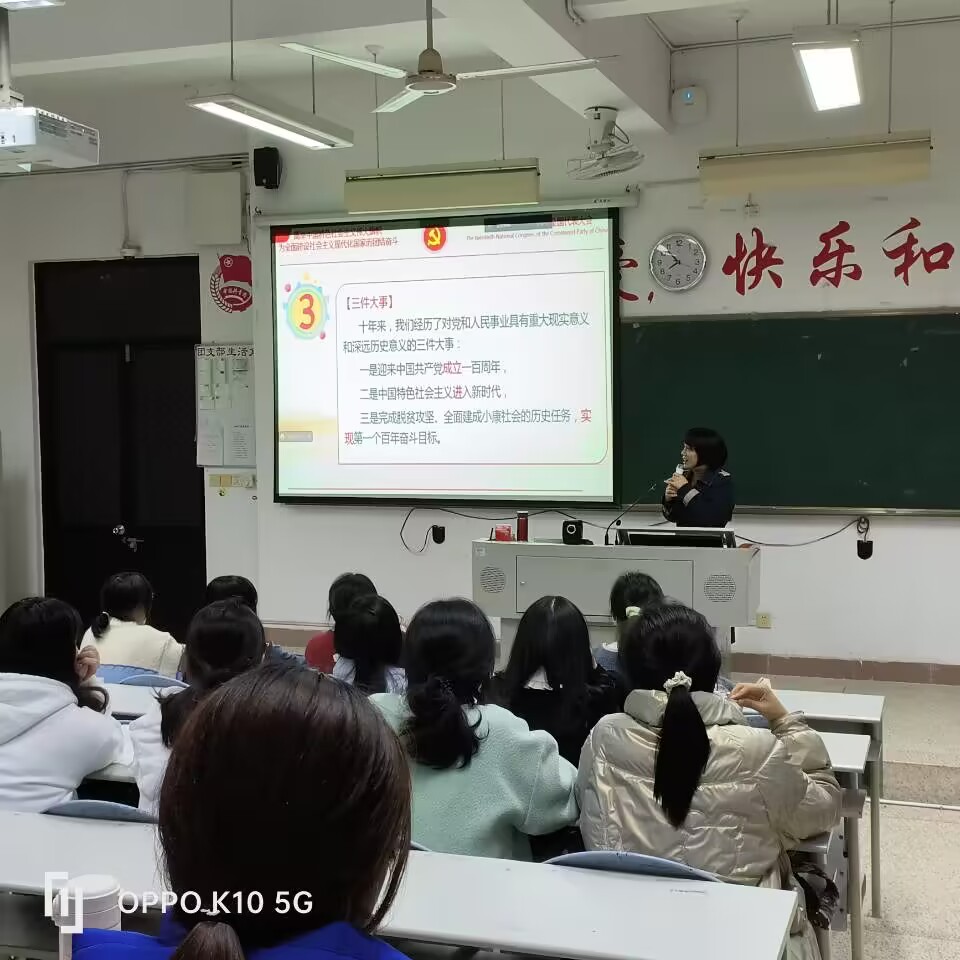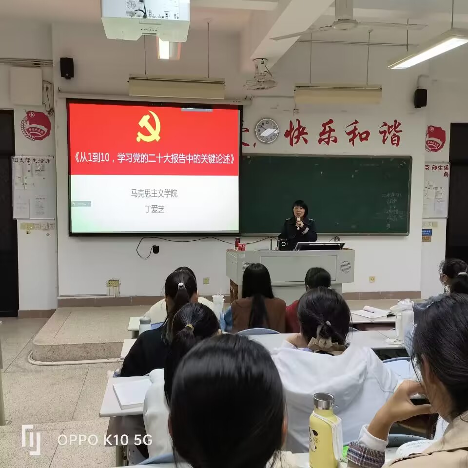 思想指引方向,燈塔照亮航程。為深入學習宣傳貫徹黨的二十大精神,2022年12月9日,馬克思主義學院教師丁愛芝為22助產(chǎn)305-306班學生和時代先鋒協(xié)會成員開展了以“從1到10,學習黨的二十大報告中的關(guān)鍵論述”為主題的宣講。