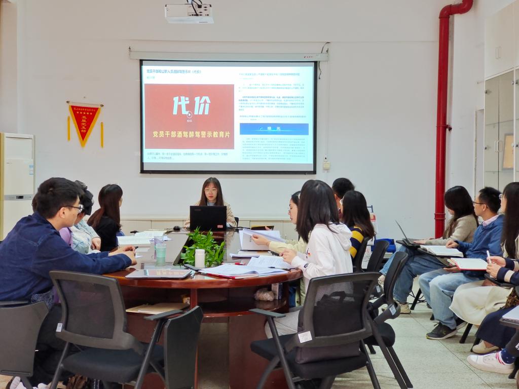 會(huì)上,蔣楠同志領(lǐng)學(xué)《關(guān)于規(guī)范黨員干部網(wǎng)絡(luò)行為的意見》,顏冰鳳、龍慧同志結(jié)合思政工作崗位作了交流匯報(bào),他們表示要把問題整改貫穿主題教育始終,堅(jiān)持問題導(dǎo)向,以學(xué)生為中心,以實(shí)干推動(dòng)思政課質(zhì)量提升。全體黨員還觀看了警示片《代價(jià)》。