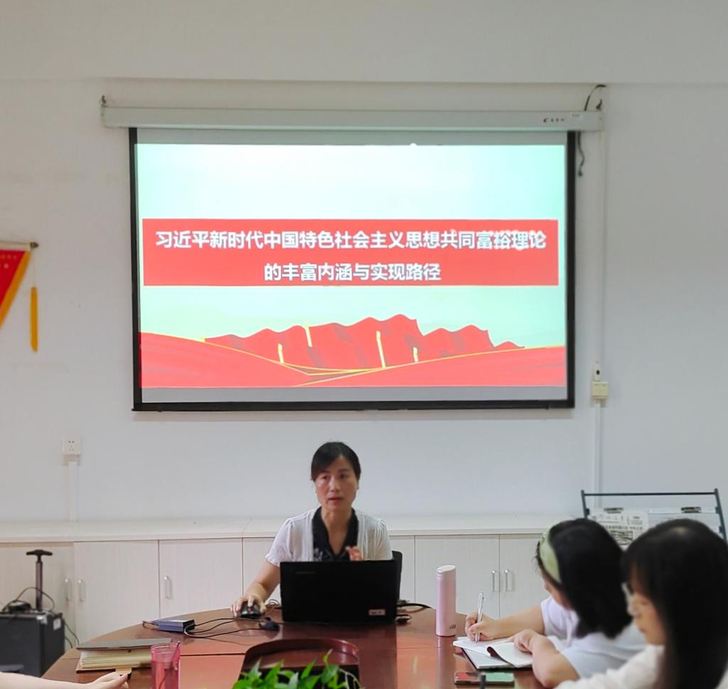 2023年6月8日,直屬馬克思主義學(xué)院黨支部副書記來朋珍同志為黨支部全體教師黨員作題為《習(xí)近平新時(shí)代中國特色社會(huì)主義思想共同富裕理論的豐富內(nèi)涵與實(shí)現(xiàn)路徑》的專題黨課。