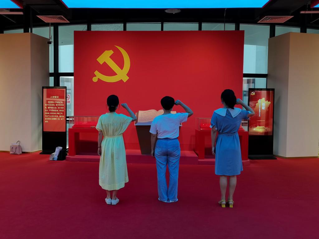 參觀期間,支部黨員在黨旗前重溫入黨誓詞。參觀結(jié)束后,黨支部書記給支部黨員上專題黨課,宣講習(xí)近平總書記在慶祝中國共產(chǎn)黨成立100周年大會上的重要講話精神。隨后,支部還召開了黨史學(xué)習(xí)教育專題組織生活會。