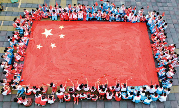 社會主義辦學(xué)方向是我國教育最鮮亮的底色,我國教育要培養(yǎng)的是社會主義建設(shè)者和接班人,這是個根本性的問題。圖為山東省沂源縣荊山路小學(xué)開展“紅領(lǐng)巾拼國旗祝福祖國迎國慶”活動,學(xué)生們在老師帶領(lǐng)下用紅領(lǐng)巾拼出了一面巨型國旗,表達(dá)對偉大祖國的祝福。(教育部供圖)
