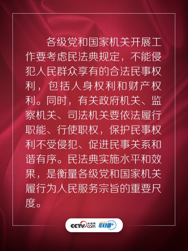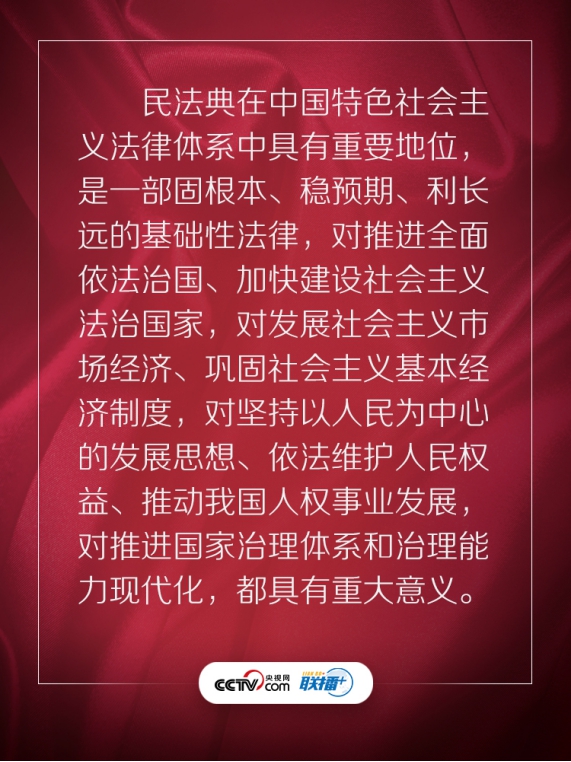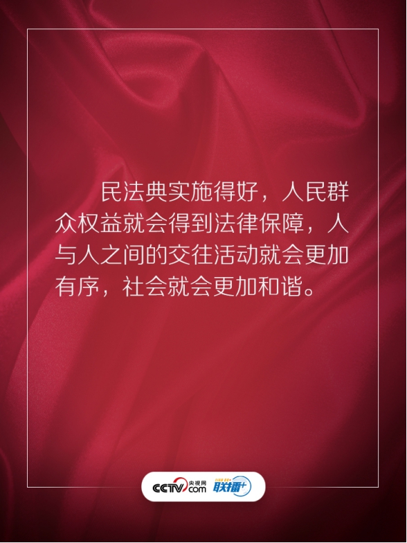 民法典回應了人民的期待,充滿了以人民為中心的底色。央視網(wǎng)《聯(lián)播+》特梳理習近平總書記相關話語,與您一起學習感悟。