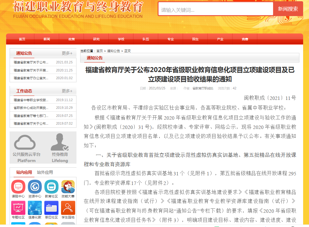 近日,福建省教育廳職成處公布了2020年省級職業(yè)教育信息化項目立項建設項目名單,我校護理學院龔海蓉老師主持申報的《護理學基礎》、藥學院何舒瀾老師主持申報的《天然藥物學基礎與應用》和醫(yī)學系張?zhí)N老師主持申報的《經(jīng)絡與腧穴》3個項目獲得“第五批省級職業(yè)教育精品在線開放課程”立項。