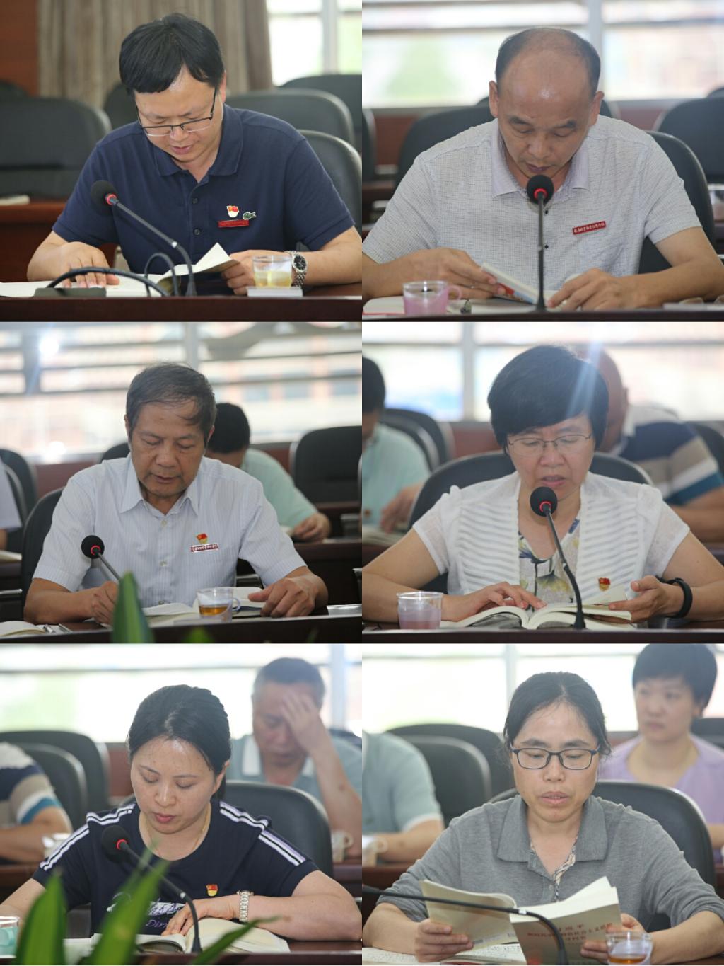 會上,葉海、蘇愛華、洪常青、謝濤、陳俊穎、阮秋容六位同志依次誦讀領(lǐng)學(xué)《習(xí)近平新時代中國特色社會主義思想學(xué)習(xí)問答》中部分篇目。