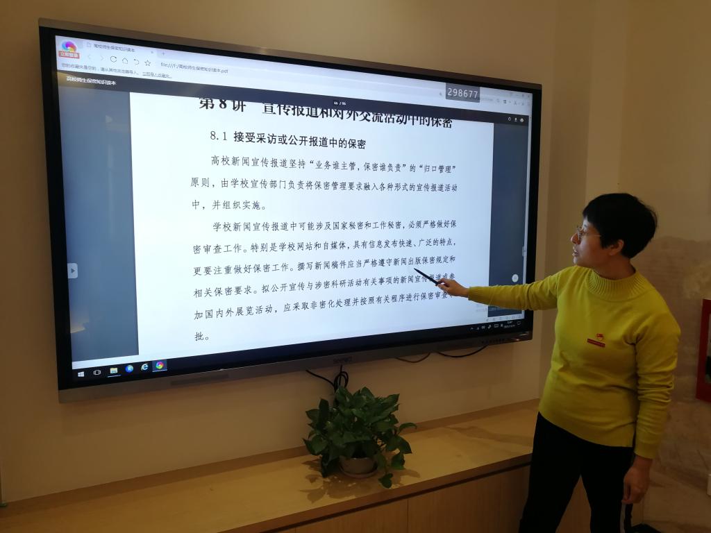 會(huì)上,柯瓊鶯還帶領(lǐng)宣傳部全體人員觀看福建省職業(yè)教育院校黨史學(xué)習(xí)教育視頻,學(xué)習(xí)《高校師生保密知識(shí)讀本》,并結(jié)合部門業(yè)務(wù)工作,針對(duì)讀本中有關(guān)“使用信息設(shè)備中的保密要求”“網(wǎng)絡(luò)活動(dòng)中的保密”“宣傳報(bào)道和對(duì)外交流活動(dòng)中的保密”這三講的內(nèi)容進(jìn)行重點(diǎn)解讀。