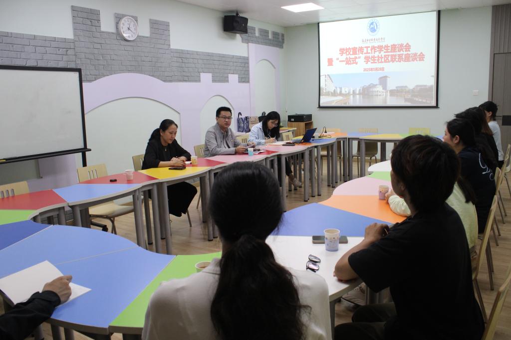 會上,宋維介紹學校宣傳部的主要工作職能及“一站式”社區(qū)黨建工作站的主要功能。參會學生代表們圍繞學校宣傳、文化建設以及學習生活中的實際問題等內(nèi)容逐一發(fā)言,并對學校文化宣傳、后勤保障等工作提出寶貴建議。宣傳部工作人員從學校管理角度,耐心地為同學們解答疑惑,積極接受學生們寶貴的建議?,F(xiàn)場氣氛和諧,展現(xiàn)了師生之間積極互動、共同成長的良好氛圍。