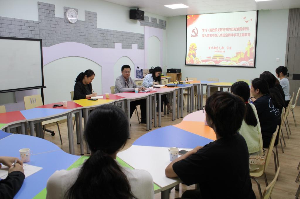 為扎實開展深入貫徹中央八項規(guī)定精神學習教育,宣傳部黨支部書記宋維講授主題黨課,介紹了《黨政機關厲行節(jié)約反對浪費條例》、學校校史和“健善仁”校園文化等內(nèi)容,倡導學生積極踐行厲行節(jié)約反對浪費行為,進一步了解學習學校悠久校史和弘揚“健善仁”校園文化。