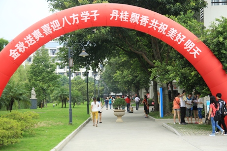金秋校園,陽光明媚,彩旗飄揚,鮮花綻放,一條條歡迎新同學(xué)的醒目標(biāo)語,一張張歡迎新同學(xué)的親切笑臉,一件件迎接新同學(xué)的細(xì)致安排,充滿了熱情和諧的迎新氛圍。