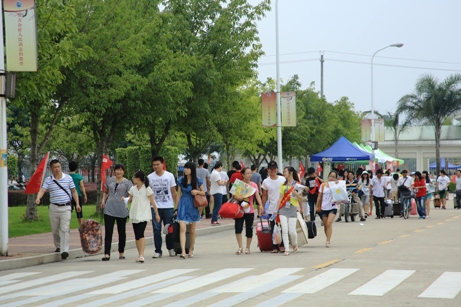 報到當(dāng)天,學(xué)院學(xué)生工作處、團委及各系部組織學(xué)生會干部在福州火車站、火車南站、汽車南站、北站、洪山橋、西客站等站點設(shè)立新生接待處,迎接新生及家長。校內(nèi)各系部新生注冊大本營內(nèi),負(fù)責(zé)每一個流程的相關(guān)人員早上七點半已做好充分準(zhǔn)備,開始了忙碌的工作,報到點的志愿者們在輔導(dǎo)員們的帶領(lǐng)下,認(rèn)真核對新生的注冊信息,細(xì)心地為新生講述注意事項,發(fā)放新生材料和宿舍鑰匙等。等待注冊的新生們則有序地排好隊,各系部書記、秘書及輔導(dǎo)員細(xì)心地為新生和家長講解新生報名注冊程序并主動幫助新生們解答各種關(guān)于住宿、學(xué)費問題,同時幫助家長們將行李放到安置點,并細(xì)心地為他們奉上一杯熱水。在一系列注冊手續(xù)完成之后,志愿者們將新生們送到寢室地點,沿途為新生講解福建衛(wèi)生職業(yè)技術(shù)學(xué)院的相關(guān)情況。財務(wù)處設(shè)置的收費點也十分有序而不亂,保衛(wèi)處工作人員在緊張地指揮車輛有序放置,學(xué)生工作處的工作人員在各報到點協(xié)調(diào)解決出現(xiàn)的問題,后勤管理處整理新生宿舍,配好了衛(wèi)生工具,超市、食堂都準(zhǔn)備了充足的日用品、食品,為開始新生活提供了有力的后勤保障……溫柔的解答、細(xì)心的照顧、體貼的服務(wù),讓初來乍到的家長和新生們感受到了福建衛(wèi)生職業(yè)技術(shù)學(xué)院的滿腔熱情和誠摯的歡迎。報到當(dāng)天,我院新生報到率比去年有明顯上升,達(dá)到92%。