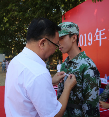 今年的開(kāi)學(xué)典禮,我院還新增了佩戴?;諆x式。學(xué)院領(lǐng)導(dǎo)和系部領(lǐng)導(dǎo)為學(xué)生代表佩戴上屬于他們的?;?。這項(xiàng)儀式讓廣大00后新生們明白,這枚?;眨?/span>不僅承載著學(xué)院“業(yè)精德誠(chéng)”的校訓(xùn)精神,還承載著衛(wèi)生健康事業(yè)工作者的初心和使命。佩戴上這枚?;?,從此就是“衛(wèi)院人”!