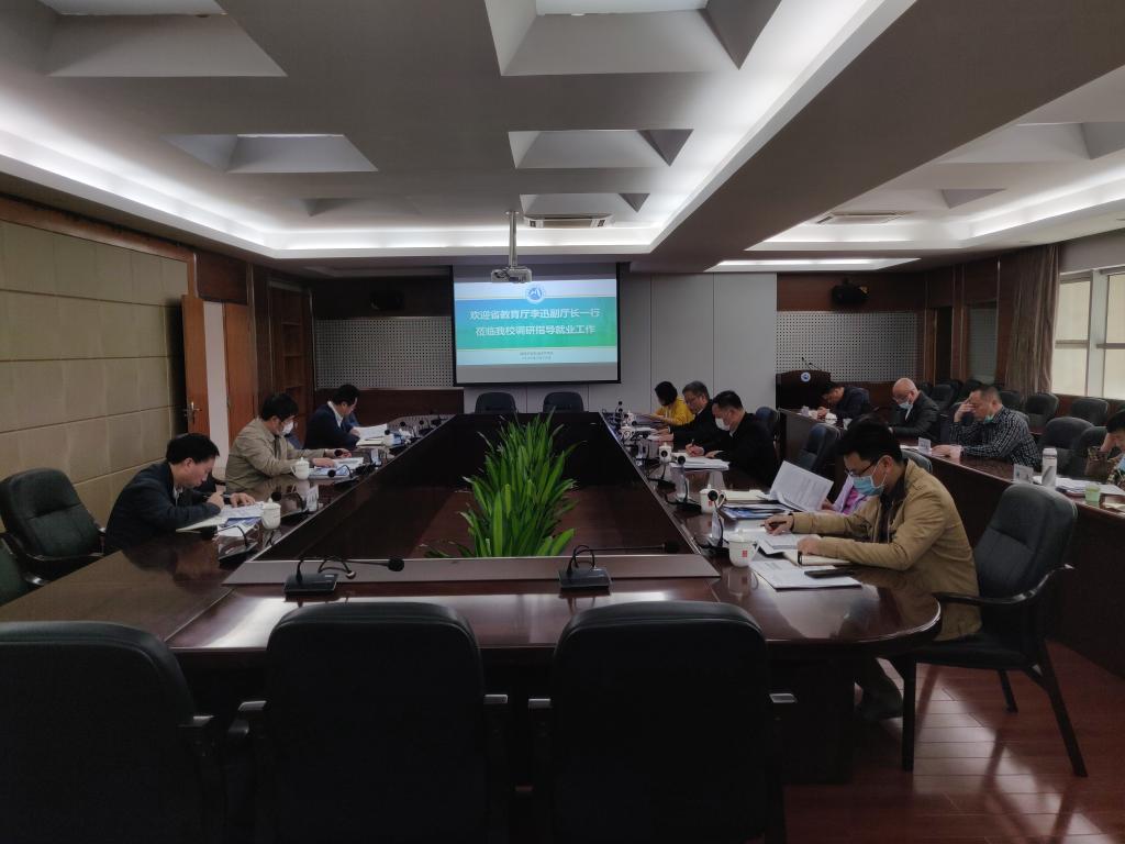 調(diào)研會(huì)上,李迅副廳長(zhǎng)對(duì)近期的開(kāi)學(xué)準(zhǔn)備工作、安全工作、就業(yè)工作、在線學(xué)習(xí)工作等做了要求。曾武祈書(shū)記代表學(xué)校向李迅副廳長(zhǎng)一行表示歡迎,并報(bào)告了近期學(xué)院的開(kāi)學(xué)準(zhǔn)備工作、安全工作在線教學(xué)工作以及疫情對(duì)我院學(xué)生就業(yè)的影響。受蘇友新校長(zhǎng)的委托,陳貞健副校長(zhǎng)重點(diǎn)匯報(bào)了我校的就業(yè)工作,他從學(xué)院的總體情況、就業(yè)的總體狀況、近三屆畢業(yè)生的就業(yè)狀況和2020屆畢業(yè)生的就業(yè)工作進(jìn)行了詳細(xì)的匯報(bào),并報(bào)告了疫情影響下今年畢業(yè)生就業(yè)面臨的問(wèn)題,提出了初步的解決辦法和下一步的工作思路,匯報(bào)數(shù)據(jù)詳實(shí),圖文并茂。