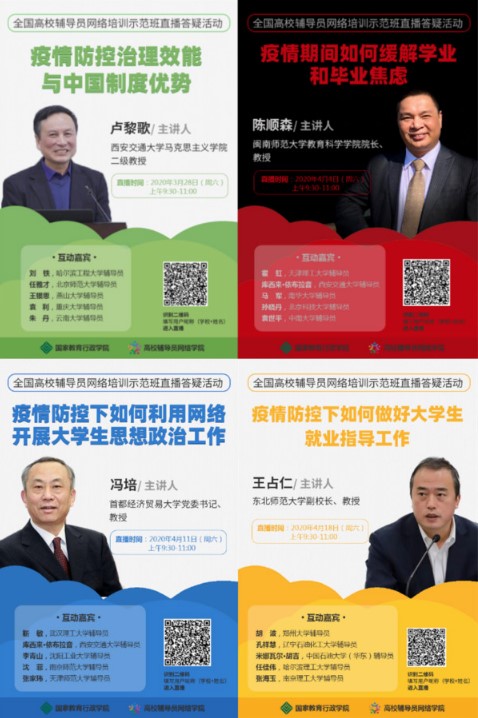 同時(shí)結(jié)合每周一次的直播課形式,緊密貼合疫情當(dāng)下青年學(xué)生的思想政治工作、學(xué)業(yè)就業(yè)指導(dǎo)等主題設(shè)置,搭建起思政工作領(lǐng)域?qū)<摇⑷珖?guó)高校輔導(dǎo)員年度人物與輔導(dǎo)員交流研討的平臺(tái),有力促進(jìn)學(xué)員相互學(xué)習(xí)共同成長(zhǎng)。