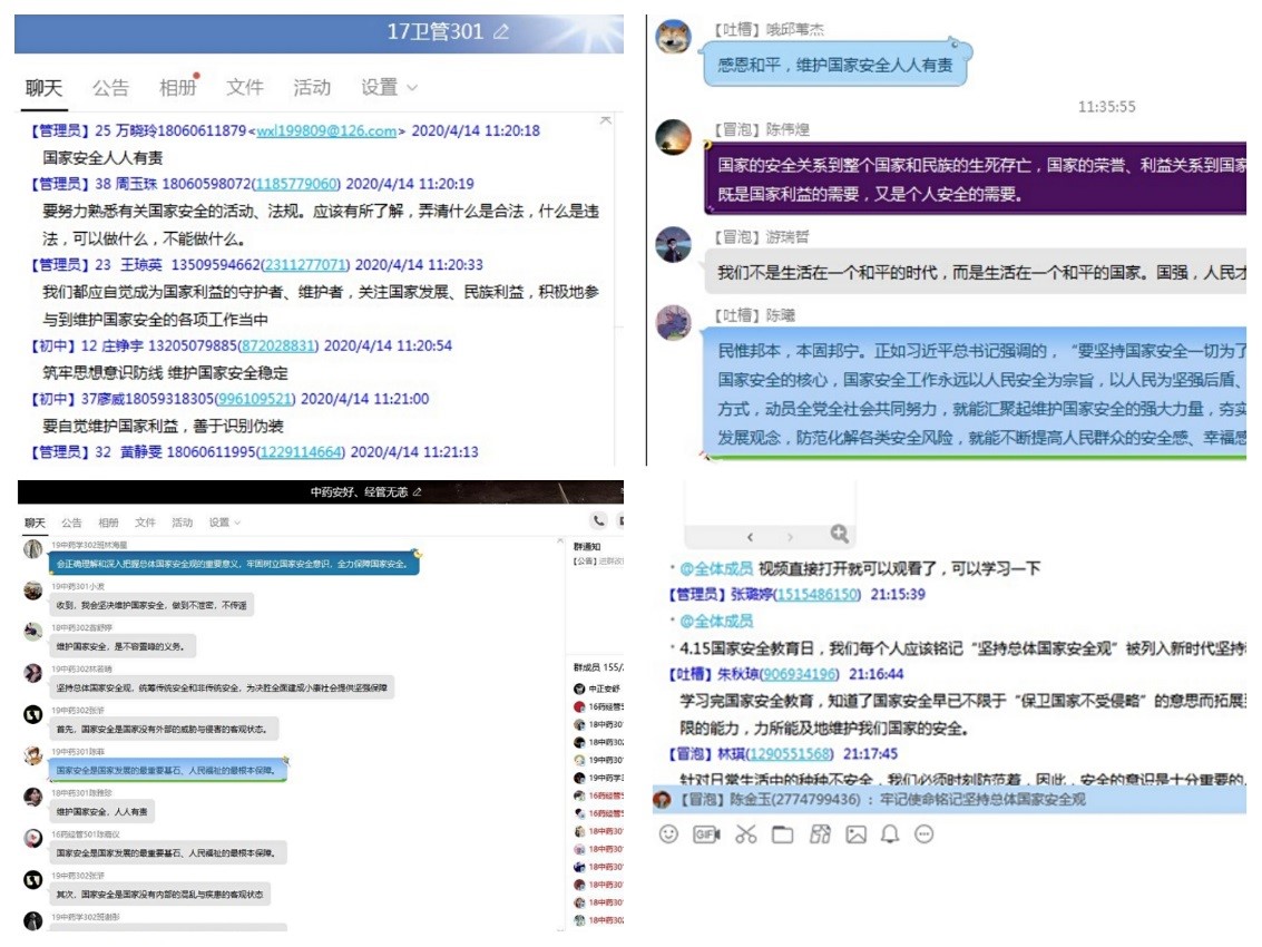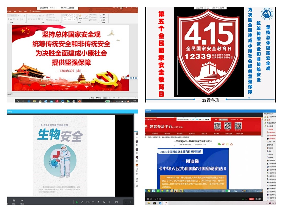 本次活動(dòng)主題為“堅(jiān)持總體國(guó)家安全觀,統(tǒng)籌傳統(tǒng)安全和非傳統(tǒng)安全,為決勝全面建成小康社會(huì)提供堅(jiān)強(qiáng)保障”。在疫情防控期間,通過“云端”班會(huì)話“安全”,使得學(xué)生進(jìn)一步加強(qiáng)了對(duì)國(guó)家安全法律法規(guī)以及相關(guān)知識(shí)的了解,牢固樹立國(guó)家安全無(wú)小事,國(guó)家安全關(guān)系你我的理念。 輔導(dǎo)員們還結(jié)合《中華人民共和國(guó)國(guó)家安全法》,《中華人民共和國(guó)網(wǎng)絡(luò)安全法》,《中華人民共和國(guó)保守國(guó)家秘密法》,《全民國(guó)家安全教育日,這些知識(shí)要知道》等內(nèi)容講解,增強(qiáng)同學(xué)們的國(guó)家安全意識(shí),自覺維護(hù)國(guó)家安全。