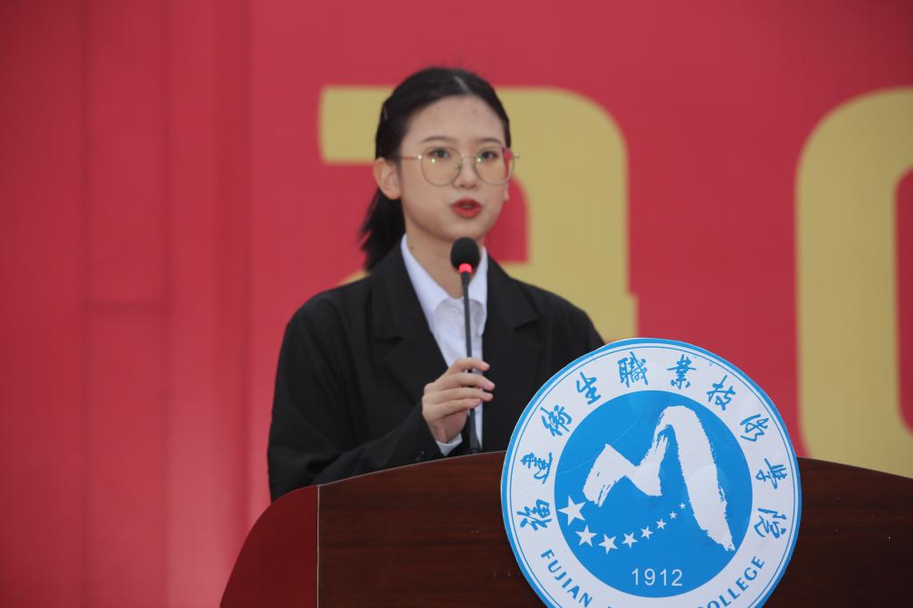 校團(tuán)委學(xué)生副書記20護(hù)理303班黃杏怡同學(xué)作為學(xué)長代表,回顧了自己在閩衛(wèi)院一年的經(jīng)歷,分享了在過去一個月里參與疫情防控工作難忘的經(jīng)歷和感悟,向?qū)W弟學(xué)妹們送上美好的祝愿,希望他們的未來熠熠生輝,成為更好的自己。