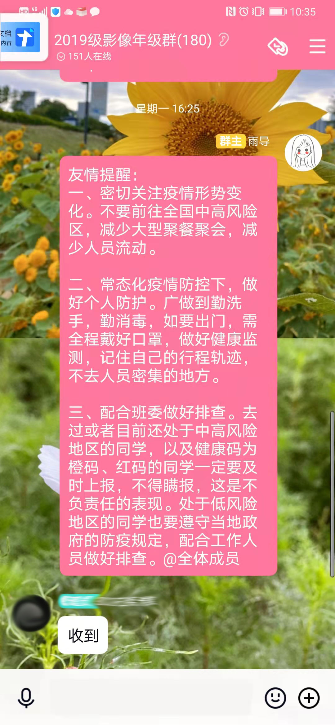 輔導(dǎo)員們還有另一個(gè)身份,他們也是中共黨員,我省疫情發(fā)生以后,他們迅速集結(jié)為學(xué)生管理黨員突擊隊(duì),深入校園疫情防控的各個(gè)角落,關(guān)心學(xué)生的學(xué)習(xí)和生活,為學(xué)生排憂解難,處處飄揚(yáng)著鮮紅的黨旗。在這沒有硝煙的戰(zhàn)“疫”中,每位閩衛(wèi)院輔導(dǎo)員都心系學(xué)生,沖在前線,守崗履責(zé),踐行著身為一名高校輔導(dǎo)員的初心和使命。相信通過全校師生的共同努力,我們一定能夠打贏這場疫情防控保衛(wèi)戰(zhàn)。
