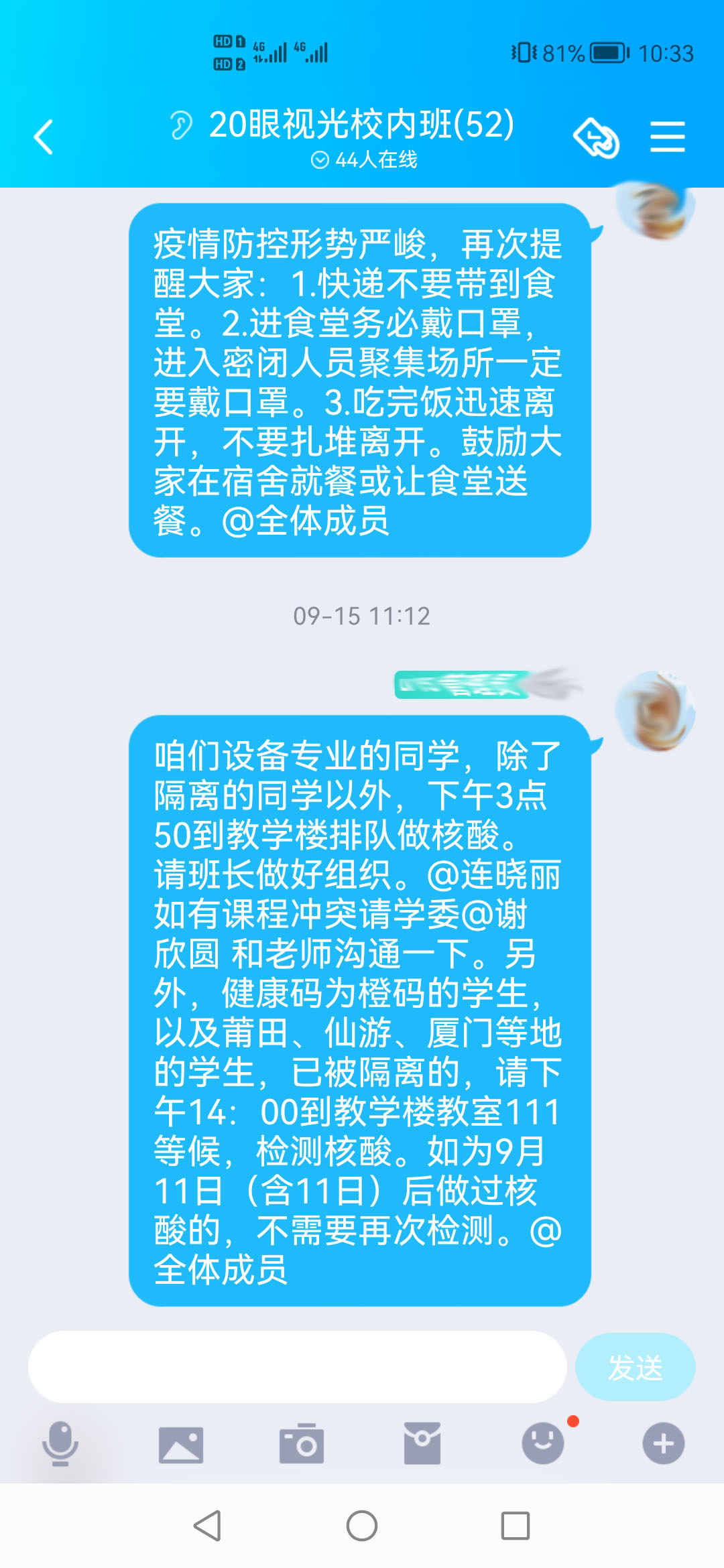 疫情就是命令,防控就是責(zé)任。9月10日傍晚,莆田仙游檢出陽性病例,而第二天,就是學(xué)校迎新報(bào)到的關(guān)鍵階段,新生人流量大、行程覆蓋面廣,疫情輸入風(fēng)險(xiǎn)高。嚴(yán)峻的疫情防控是對(duì)校園疫情管理的一場實(shí)戰(zhàn)大考——在這個(gè)戰(zhàn)場和考場上,有那么一個(gè)團(tuán)隊(duì),主動(dòng)作為、勇于擔(dān)當(dāng),把做好疫情防控作為當(dāng)前最重要的政治任務(wù),夜以繼日地投身于疫情防控工作中,他們,就是同學(xué)們最熟悉的輔導(dǎo)員。