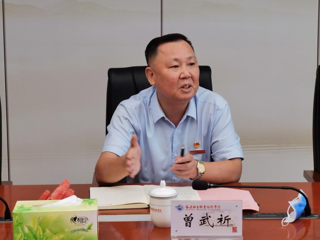 曾武祈對高本貫通學生來校學習表示祝賀和歡迎,并送上節(jié)日問候。他詳細了解學生的飲食、生活習慣,同時表示對學生所提的建議會要求相關部門抓緊落實整改。同時,對學生提出三點殷切期盼。一是要有家國情懷,要把個人命運與國家、民族和社會的命運融合在一起,要愛國、愛黨、愛學校、愛家人、愛自己,講擔當,做奉獻。二是要有人文關懷,“醫(yī)學是人學,醫(yī)道重溫度”,其本質(zhì)就是人文關懷,需要尊重生命,幫助他人,關愛社會,作為醫(yī)學生要弘揚我國醫(yī)者仁心的傳統(tǒng)美德;三是要攬技入懷,秉承業(yè)精德誠的校訓精神,努力學習專業(yè)知識,掌握精湛的醫(yī)學技術(shù),時刻牢記醫(yī)者初心,不辱醫(yī)學生救死扶傷的使命。