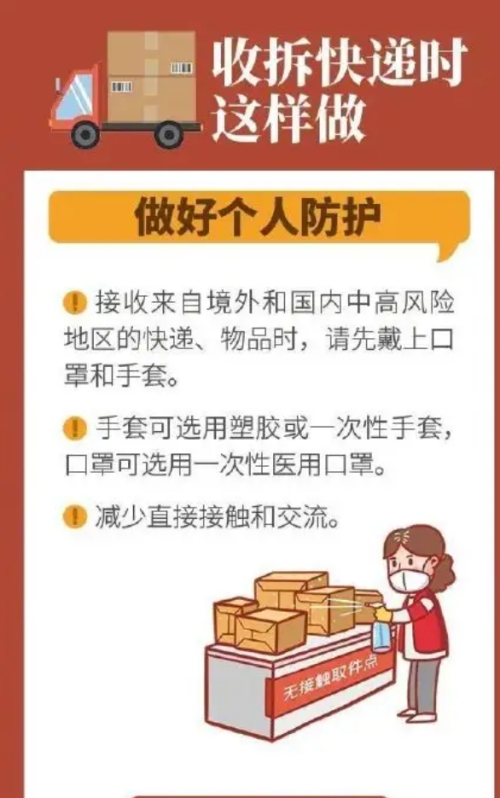 減少不必要網(wǎng)購,特別是不從中高風(fēng)險區(qū)與國(境)外購物。在接收快遞時,應(yīng)全程佩戴口罩,建議先對外包裝進(jìn)行消毒,或者放置在通風(fēng)有陽光處靜置一段時間后再開包使用,拆包后的垃圾應(yīng)按垃圾分類處理。處理完畢后,清洗消毒雙手。如接收到涉疫快遞,應(yīng)主動報告輔導(dǎo)員,并配合排查工作。