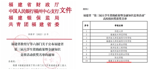 近日,福建省教育廳等六部門公布福建省第三屆大學(xué)生資助政策暨金融知識(shí)競賽活動(dòng)獲獎(jiǎng)名單,我校榮獲高校組織獎(jiǎng),這是我校連續(xù)三屆獲此獎(jiǎng)項(xiàng)。