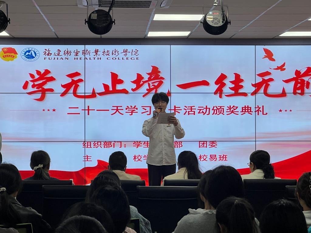 春天的閩衛(wèi)院,清朗的學(xué)風(fēng)拂面而來(lái),學(xué)校持續(xù)開(kāi)展三期的“21天學(xué)習(xí)打卡活動(dòng)”完美收官。4月1日,學(xué)校在“一站式”學(xué)生社區(qū)的青年之家多媒體活動(dòng)室舉辦學(xué)習(xí)打卡活動(dòng)頒獎(jiǎng)儀式,副校長(zhǎng)黃銘珊出席儀式,學(xué)生工作部、各學(xué)院、校學(xué)習(xí)部、校易班、獲獎(jiǎng)學(xué)生代表等100余名師生參加儀式。
