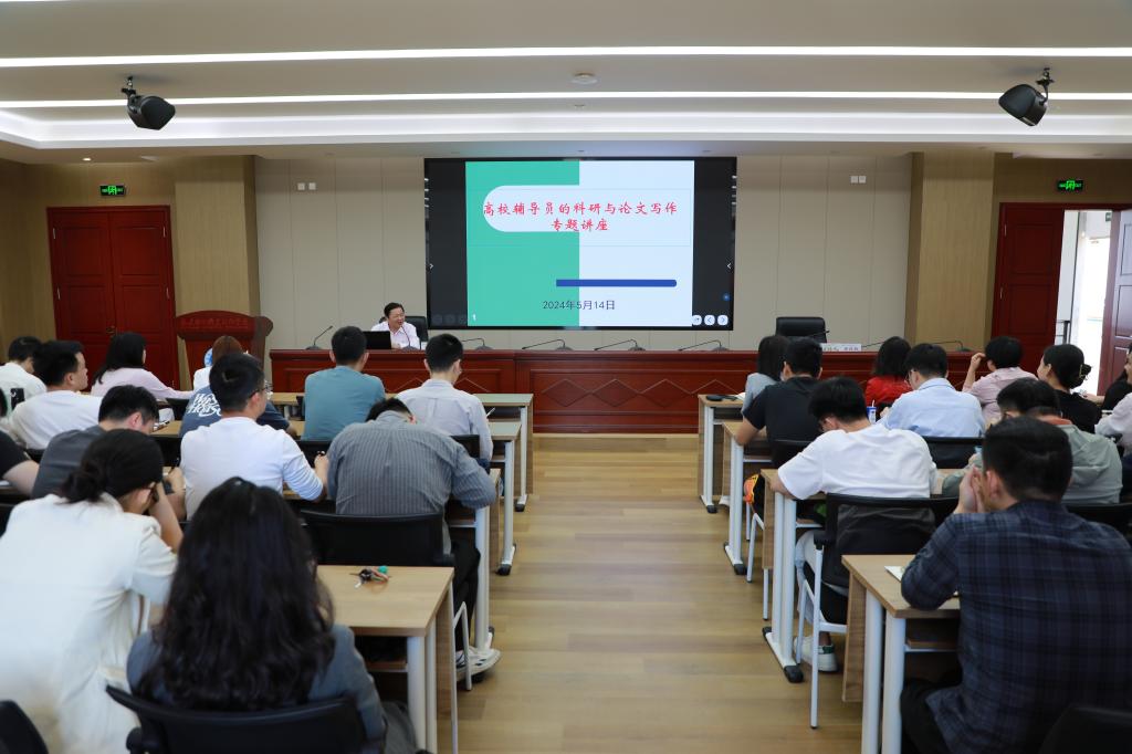 為提升我校輔導員的科研素養(yǎng)和論文寫作水平,促進輔導員隊伍的專業(yè)化發(fā)展,5月14日,福建農林大學黃旺生教授以“高校輔導員的科研與論文寫作”為主題,為我校輔導員開展專題講座。全體專兼職輔導員參加講座,講座由學生工作部部長陳俊穎主持。