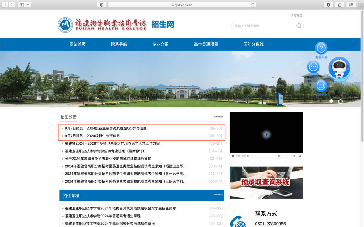 2024級新生可登錄福建衛(wèi)生職業(yè)技術(shù)學(xué)院招生網(wǎng)(網(wǎng)址:http://oule818.com/zsw/)查詢自己的分班信息及對應(yīng)的輔導(dǎo)員和QQ群號。