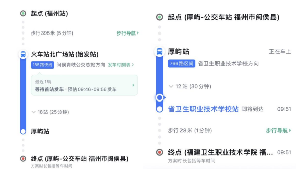 乘坐185路快線公交車至厚嶼站后,換乘766路區(qū)間公交車到衛(wèi)校站。