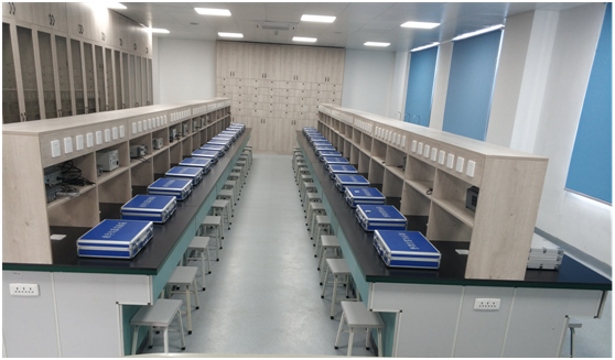 智能醫(yī)療裝備技術實訓基地于2020年獲評福建省高水平專業(yè)化產教融合實訓基地,所在專業(yè)于2021年獲評福建省“雙高”建設專業(yè)群。該實訓基地建有醫(yī)用電子儀器實訓室、醫(yī)用電子仿真實訓室(計算機實訓室),配備有醫(yī)用電子線路實驗箱、心電圖機實驗箱、數(shù)字化醫(yī)療儀器實驗箱、單片機開發(fā)實驗箱、嵌入式系統(tǒng)開發(fā)實驗箱、醫(yī)用傳感器實驗箱、電路基礎實驗箱、模擬電子技術實驗箱、數(shù)字電子技術實驗箱。電工職業(yè)資格考證實訓室和1+x集成電路開發(fā)與測試實訓室(摩爾工坊)目前正在建設中。同時可共享使用醫(yī)學影像基地、醫(yī)學檢驗實訓基地和眼視光技術實訓基地之實訓室及相關設備。