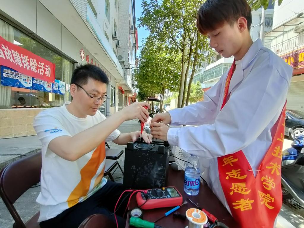 在老師的指導下,同學們經(jīng)過一番細致耐心的檢修,讓存在故障的小家電“重獲新生”。一位理發(fā)店老板看到電動剃須刀又能重新轉動,非常開心直言要為同學們免費理發(fā)表達感謝之意。大部分村民們都滿意地帶走修好的電器,一些村民表示,雖然缺少特殊配件無法現(xiàn)場維修好,但是至少了解到損壞的原因,能精準購買零配件找人修好的。村民們開心的笑容以及樸實無華的話語滿含著對同學們的認可,也是大家努力學習技能的最好回報。
