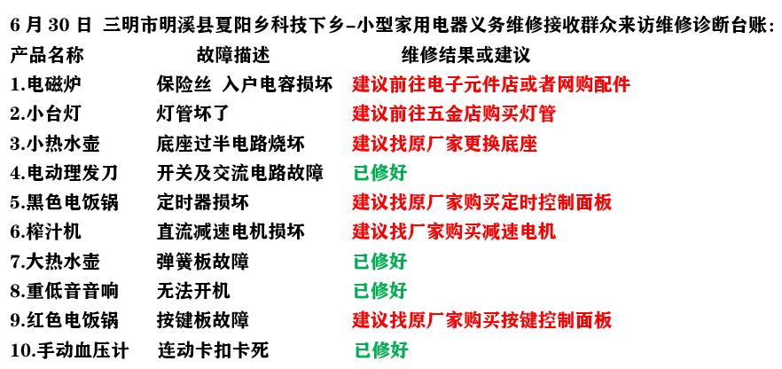 以下是紅色筑夢隊在本次“三下鄉(xiāng)”義務家電維修社會實踐活動中的成果: